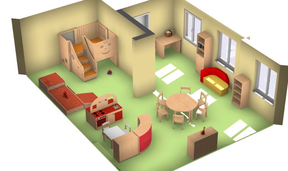 Planen Sie mit uns Ihr Vorhaben, vom einzelnen Schrank oder Sitzgruppe bis zum kompletten Gebäude, angefangen vom Eingangsbereich, über die Garderoben, Gruppen- und Essräume, Küchen, Schlaf- und Snoozelenräume, bis hin zu Turn- und Bewegungsräumen sowie Büro- und Personalräume.